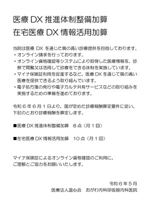 医療DX推進体制整備加算・在宅医療DX情情報活用加算(院内掲示)